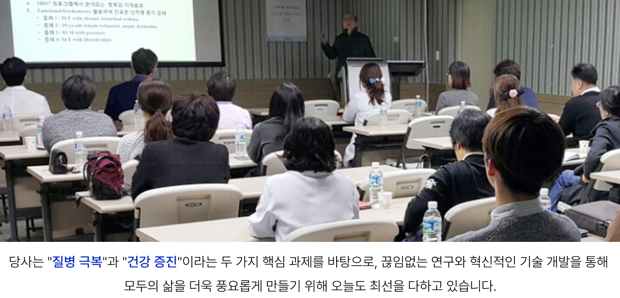 당사가 개발한 MDS(Metabolic Diagnostic System) 솔루션은 말초 혈액 검사와 생화학 검사를 통해 환자의 영양 상태, 위장관 환경, 중금속과 같은 유해 물질의 축적 여부를 정밀하게 분석합니다. 이를 통해 의료진이 만성 질환의 근본 원인을 파악하고, 기존의 대증 요법을 넘어 보다 근원적인 치료를 병행할 수 있는 새로운 통합의학적 진료 방식을 제공하고 있습니다.