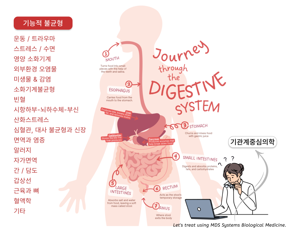 | 현대의학 | 기능의학 / 기관계중심의학 |