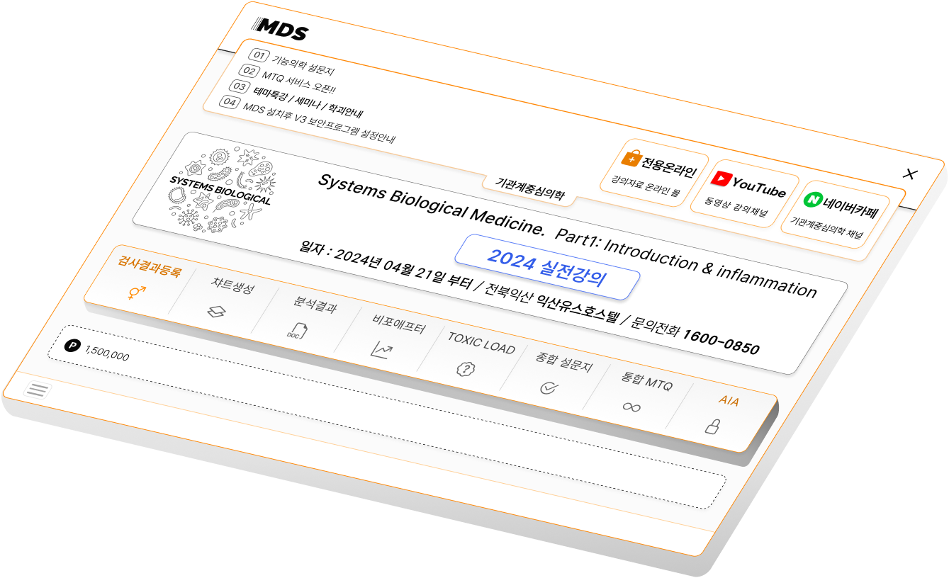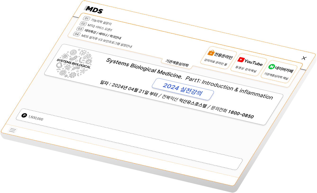 기관계중심의학 및 MDS 솔루션을 이용한 환자 진료 안내 및 핵심이론 강의
